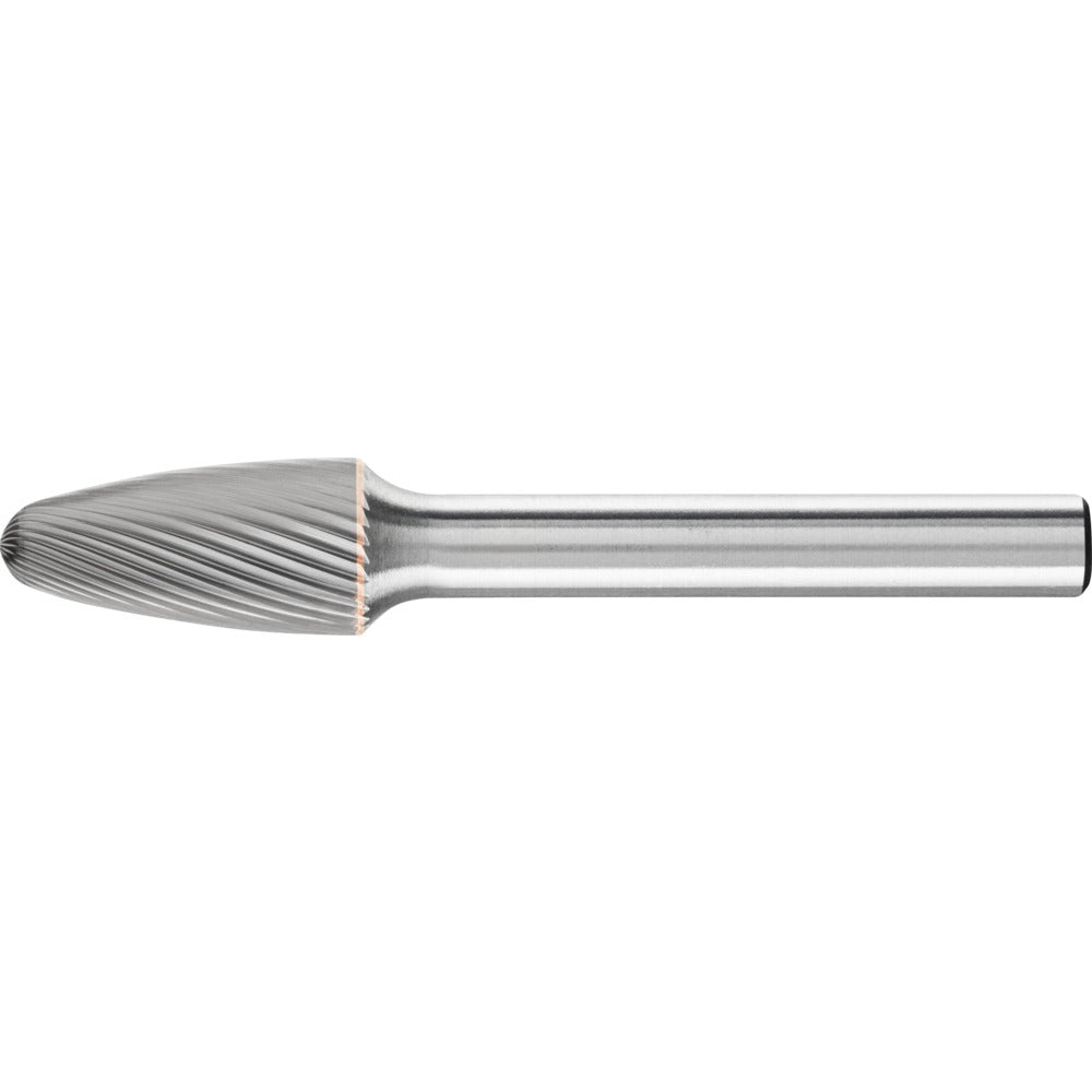 Spetsformad fil med rundad topp enligt DIN 8032 med tandning enligt DIN 8033. GL = totallängd (homogen hårdmetall) SL = skaftlängd (långt stålskaft)