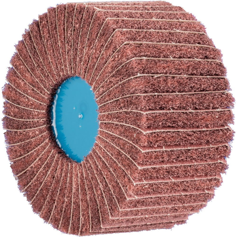 Polernylonet är radiellt monterat. Genom tät packning av lamellerna ökar livslängden. Verktyget är utformat för bearbetning av mellanstora ytor med varvtalsreglerade vinkelslipmaskiner och kälsvetsslipmaskiner och kan monteras direkt på arbetsspindeln.